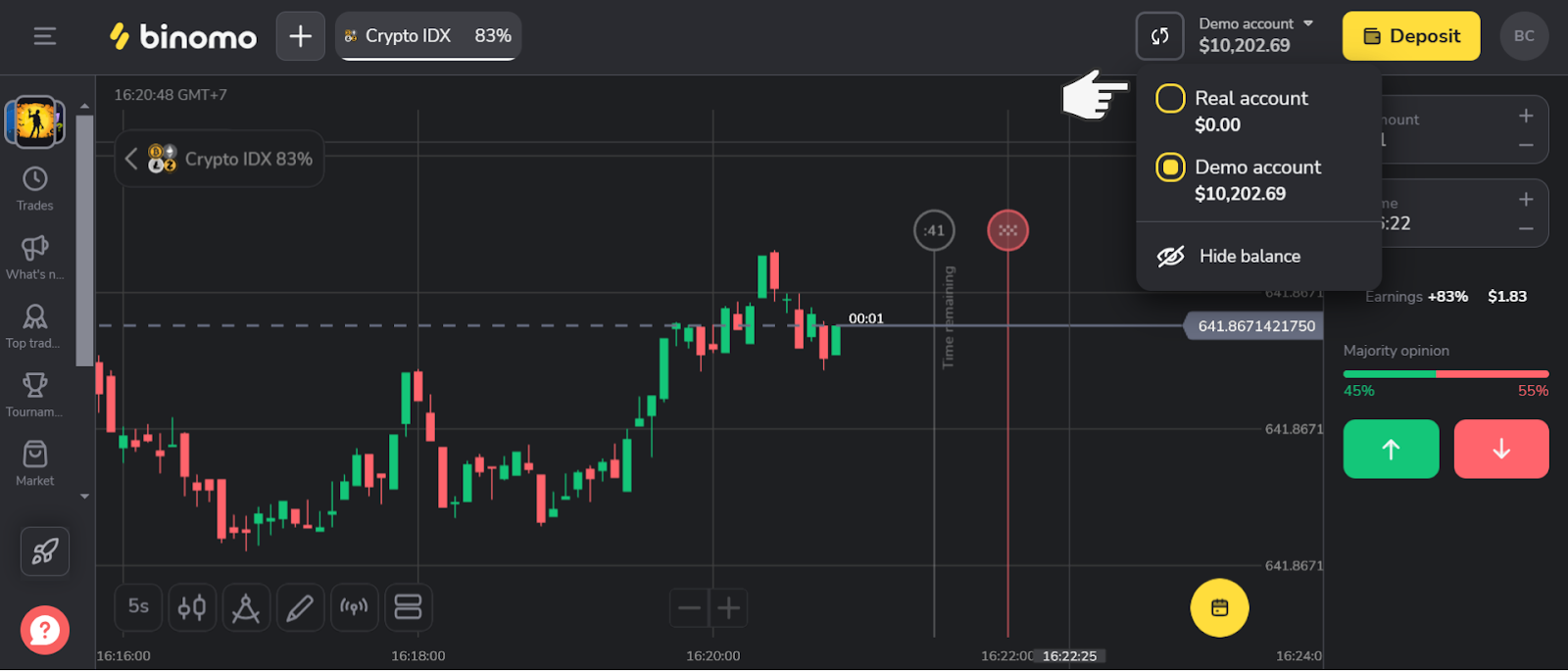 Kripya dhyan dein, demo account ke saath trade ki sankhya aapke pehle deposit karne se pehle 30 tak seemit hai. Uske baad yeh aseemit ho jaati hai.