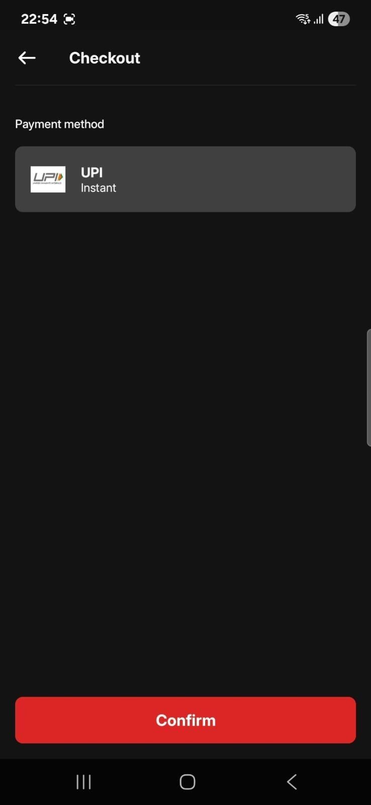 7. On the next screen select UPI option from “Add Money(INR)” screen: