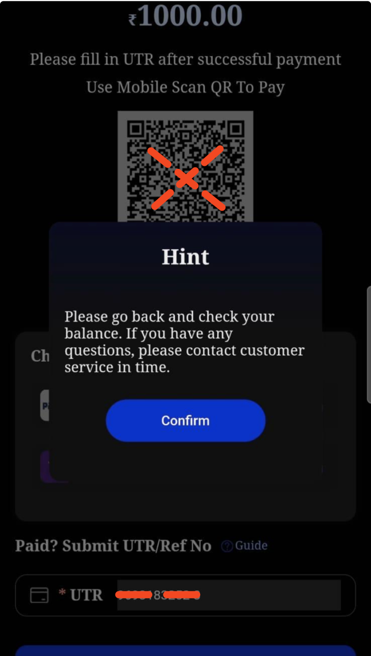 12. On the next screen you will see a QR code to pay the chosen amount.
