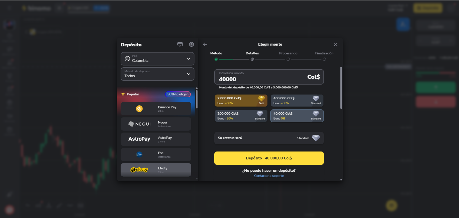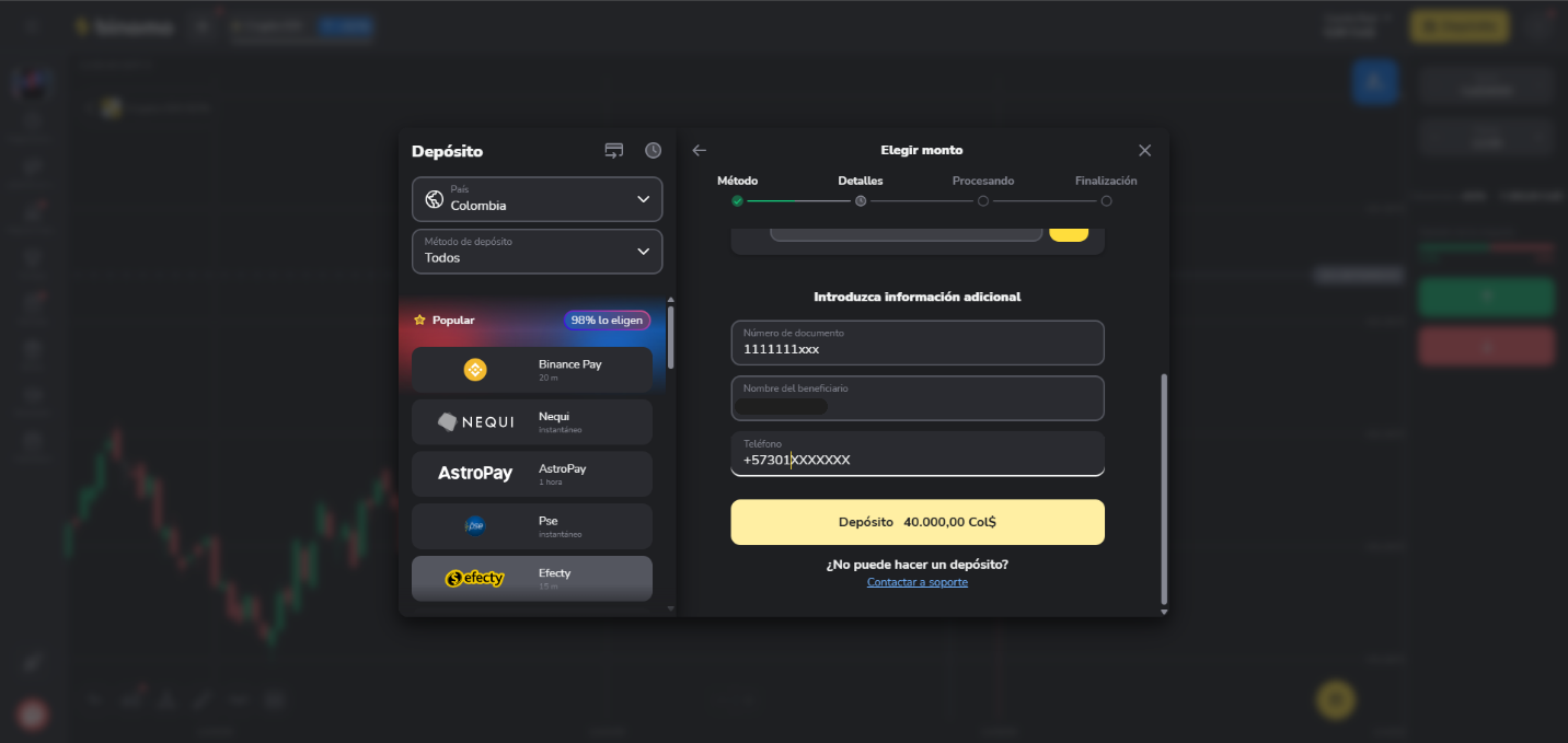 Cómo realizar depósitos en su cuenta de Binomo a través de Efecty en Colombia