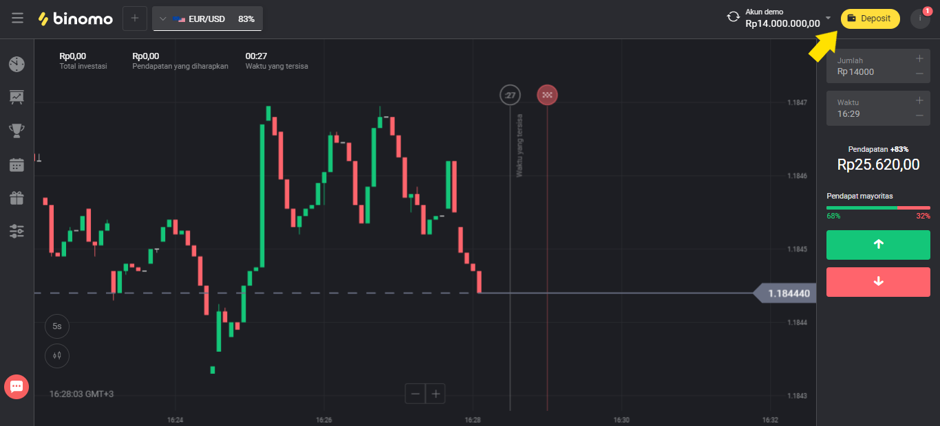 1. Klik tombol “Deposit” di sudut kanan atas.