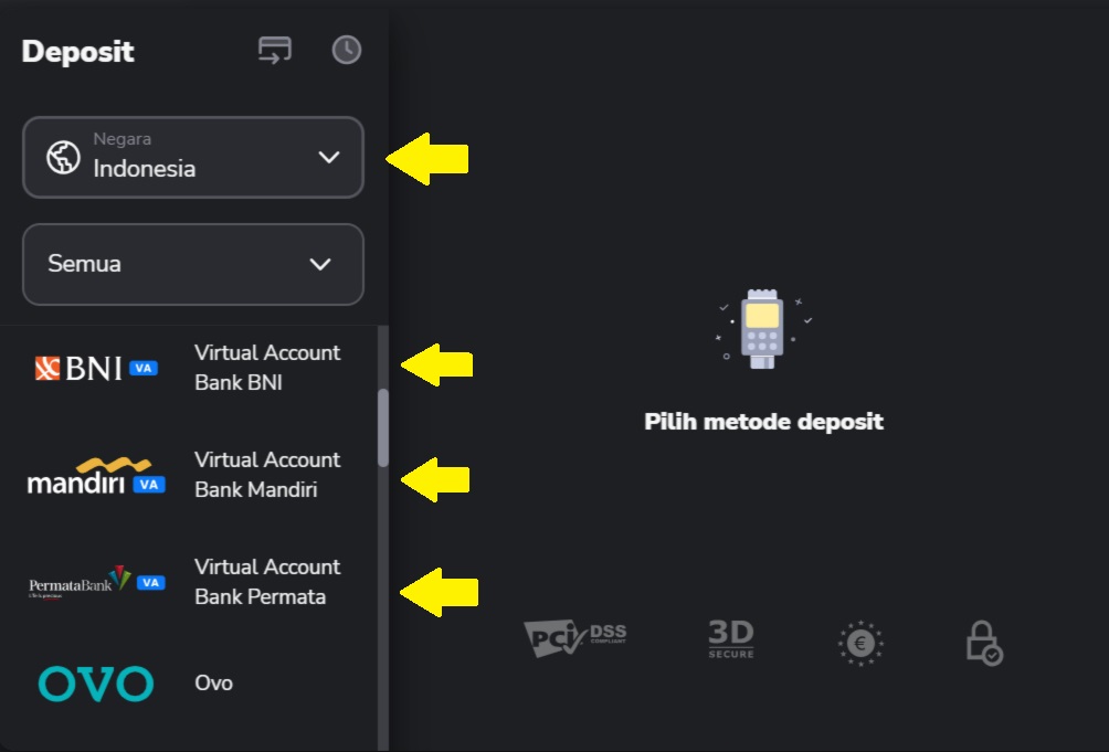 4. Jika Anda ingin melakukan deposit dengan bonus, klik pada salah satu pilihan di bawah.